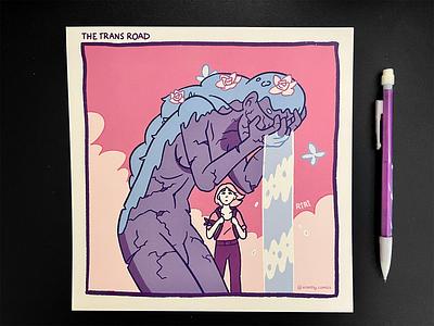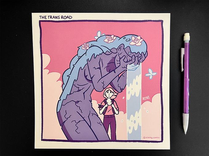 Print of a panel from The Trans Road comic by Alienby Comics. An art piece dedicated to the pain experienced by those who have come before. Printed on 80 lbs uncoated stock (8 x 8 in. / 20.32 x 20.32 cm)